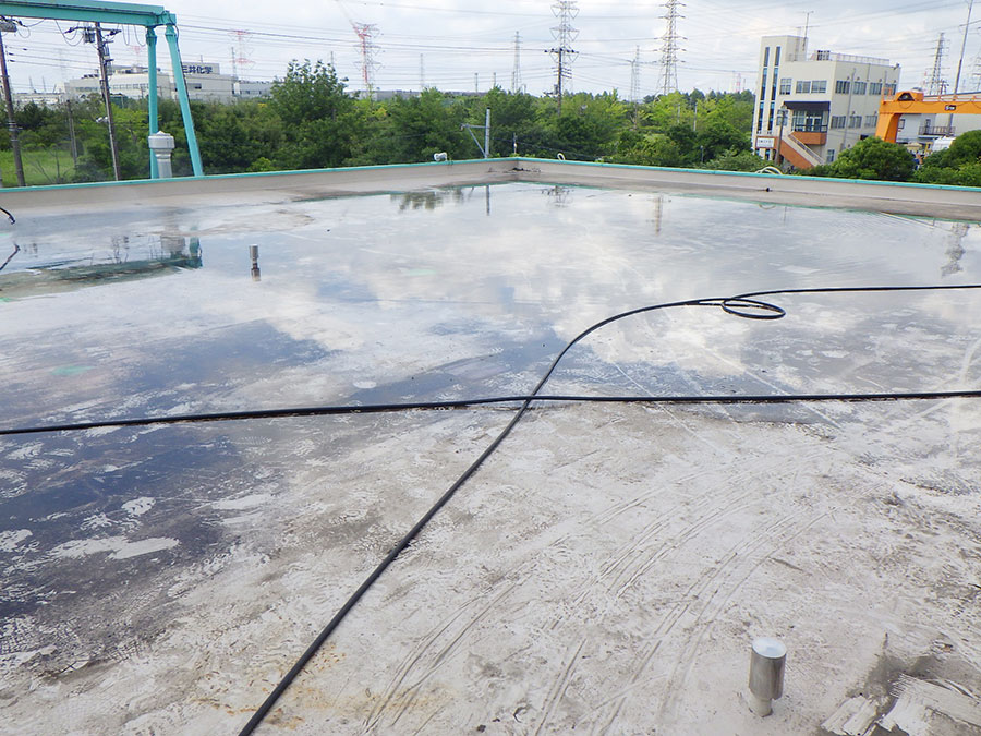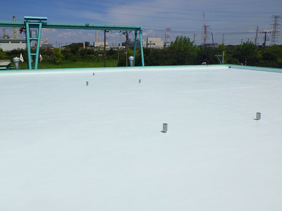こちらで紹介する防熱防水工事とは、アクリルゴム系塗膜防水材を使用した防水工法です。